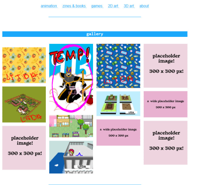 Date: 2025-10-01 11:24 pm (UTC)Yes, aside from one (maybe animated) illustration that would be super detailed for December/Winter and I did not finish all the art pieces for my website [image of sample of gallery]. I did upload the base website to nekowebs with the gallery removed so the process was broken up into smaller steps.
